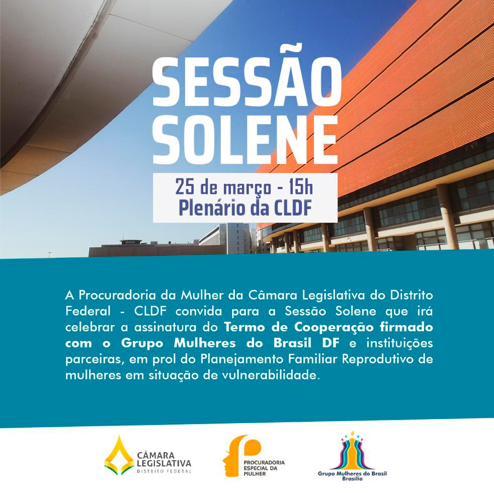 A procuradora da Mulher na Câmara Legislativa do Distrito Federal (CLDF), deputada Júlia Lucy, organizou uma sessão solene para apresentar as ações de Planejamento Familiar Reprodutivo, realizadas desde 2019 pela Procuradoria Especial da Mulher (PEM). A solenidade irá celebrar a parceria firmada entre a Procuradoria, o Grupo Mulheres do Brasil DF e as instituições parceiras, em favor da pauta.