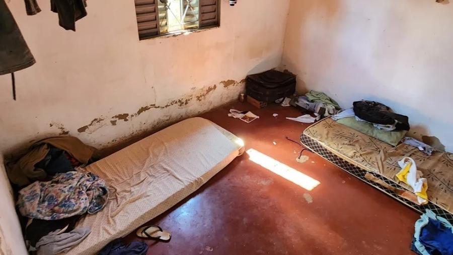 Trabalhadores em condições análogas à escravidão dormiam em colchãos velhos num abrigo sujo em Nova Glória (GO)Imagem: Divulgação/Ministério do Trabalho e Emprego